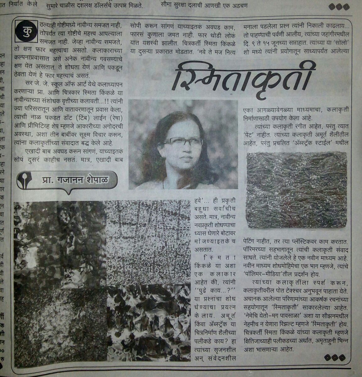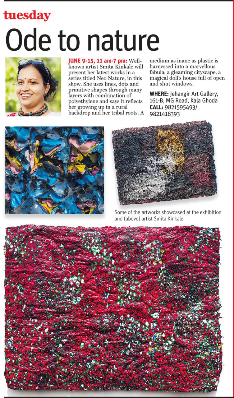 Sir JJ School of Art, a 160 year old art-education institution in Mumbai, has a history of its own Abstract Art dating back to 1950s. This is where Smita Kinkale was a student and for a decade now, has been a teacher. The tradition of abstraction that this institution has cherished is about total absence of form, where artistic expression is inherent in application of paint ‒ oil or acrylic- on canvas. Smita Kinkale’s departure from this tradition has now been a thing of the past for her, as her second solo show in Mumbai tends to affirm this tradition, rather than to negate it. When Smita Kinkale negated the canvas and chose polyethylene, the choice was more out of her response to her
