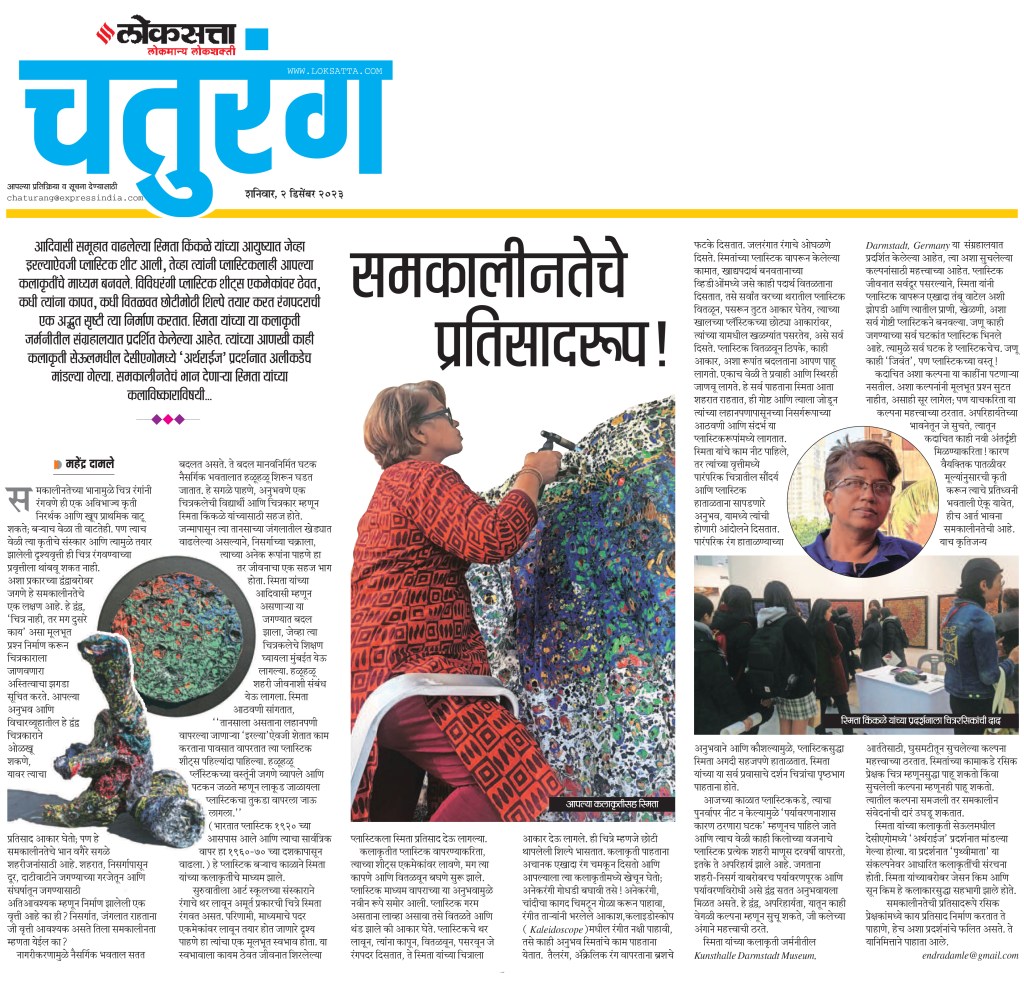 immediate surroundings and not as a rebellion. Indeed, she represents a generation that prefers being true to oneself than indulge is rebellions. Hollowness of what was seen as hegemonic in the past is so evident post millennium, that the artist feels no need to say it is hollow. Instead, s/he charts an alternative path of her own. Smita did just that. Abundant, countless sheets, made of the C2H4 substance was the first thing she noticed when she left her maternal home that was in the protected forest of Tansa in Thane district, and began studying in Mumbai. Plastic or polyethylene was there in the tribal belt of Tansa too, but its all- pervasive presence was felt in a metropolis. Smita chose to experiment with this intriguing material, and has remained with it since more than a decade now. The process may sound violent to some, but is somehow intricate and delicate. The artist spreads sheets of polythene on one another, she charts our some geometrical patterns on these sheets together, by cutting them with a blade. Sometimes, these very cuts would be potent enough to take shapes of crafted patterns. Once this initial work is done, she torches up a roll of black polyethylene and lets it’s flame touch the sheets below. The sheets now become one, and the black fire-brush leaves its marks on them. The artist decides whether to keep her steady and firm hands moving , or to stop for a while. She might have taken a roller in her hands, and a canvas to be painted with it, like many of her predecessors did. Or palette knife, or thick brushes, as many other abstract artists from Mumbai did. A thick roll of polythene , instead, gives those tiny dots and trenches into the layers of sheet. Poetry begins here…